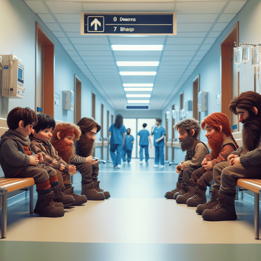 Hastane asansörüne yönelmiş ve iki kat aşağıya inmiş. Asansör kapısı açılmış ve karşısında oturan yedi tane cüceyle karşılaşmış. Kafasını kaldırdığında, Ortopedi ve Travmatoloji bölümünde olduğunu fark etmiş.